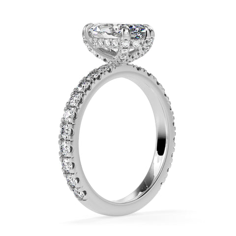 Each diamond is a promise of forever, creating a dazzling display of light and love with every movement of the hand. This side 0.83 carat pave shank with a hidden wrapped halo transcends mere jewelry,...
