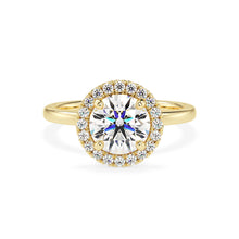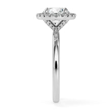 This radiant treasure is highlighted by a resplendent single diamond, with a gracefully shimmering 0.45ct halo, which seems to magnify its dazzling beauty. Whether poised to embark on the journey of a lifetime with a fairy-tale proposal or celebrating the milestones of shared affection with a meaningful anniversary gift, this ring is destined to captivate the heart of your beloved.