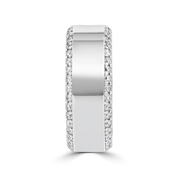 This gentleman's ring is crafted in 14K white gold and showcases 80 round brilliant cut diamonds for a TDW of .83cts. With a lavish high polish finish to give it the perfect amount luster. Made in USA.