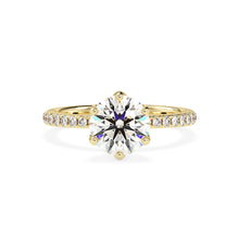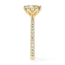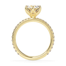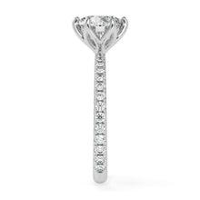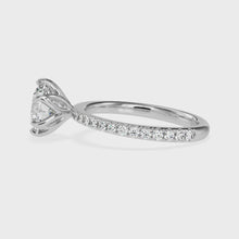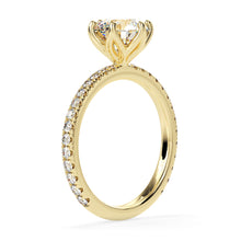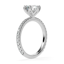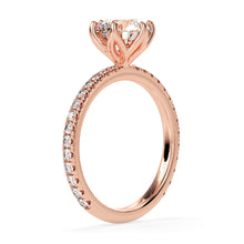 A true masterpiece of luxury and elegance. The center diamond is nestled in a floral setting, with its brilliant sparkle drawing all eyes towards it. The surrounding 0.50ct pave diamonds on the band create a dazzling contrast that is simply mesmerizing. This ring is sure to make a statement and leave a lasting impression on all who see it.