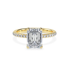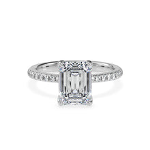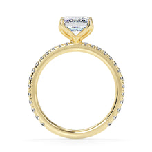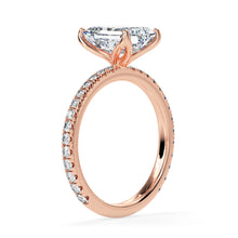 A true masterpiece of luxury and elegance. The center diamond is nestled in a floral setting, with its brilliant sparkle drawing all eyes towards it. The surrounding 0.50ct pave diamonds on the band create a dazzling contrast that is simply mesmerizing. This ring is sure to make a statement and leave a lasting impression on all who see it.