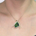 Truly unique one of a kind design and handcrafted in 14K YG this necklace features a 17.00ct Ammolite pendant in vibrant blue and green hues. Adorned by (31) 0.20cts of round brilliant cut diamonds and is set with a high polish finish. Made in the USA.